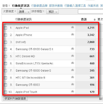 可以看到到訪我的某網站的行動裝置詳細資訊,